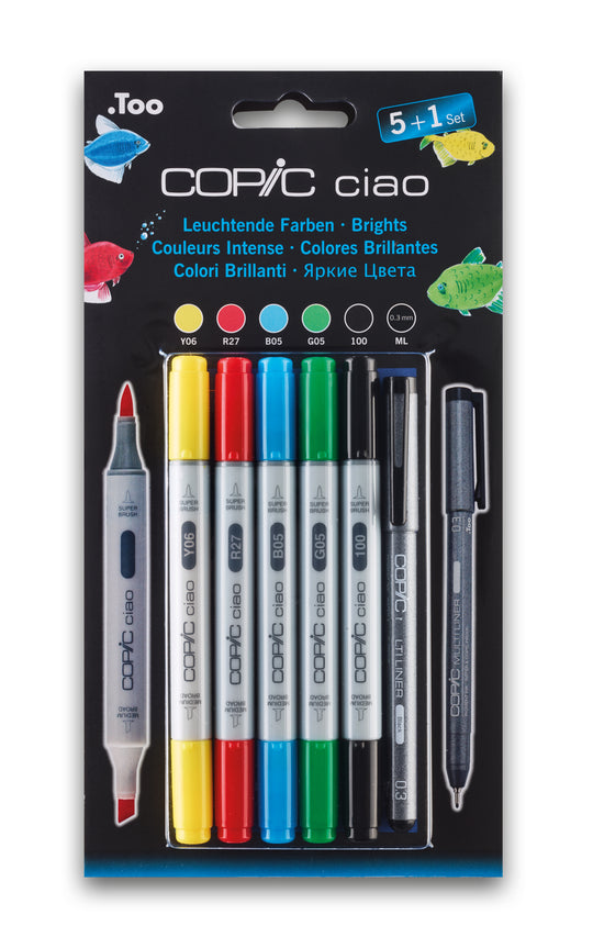 COPIC Ciao Coloured Marker Pen - 5+1 Set Bright Colours, For Art & Crafts, Colouring, Graphics, Highlighter, Design, Anime, Professional & Beginners, Art Supplies & Colouring Books