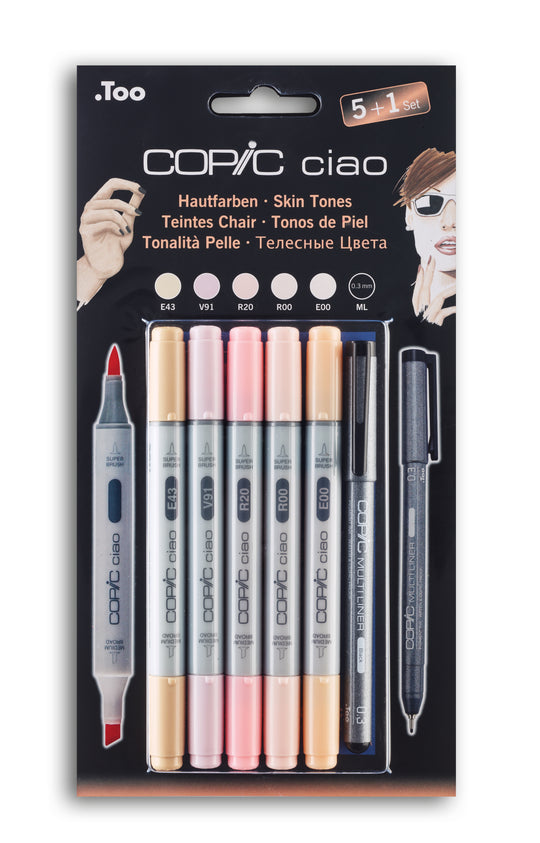 COPIC Ciao Coloured Marker Pen - 5+1 Set Portrait 1, For Art & Crafts, Colouring, Graphics, Highlighter, Design, Anime, Professional & Beginners, Art Supplies & Colouring Books