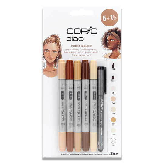 COPIC Ciao Coloured Marker Pen - 5+1 Set Portrait 2, For Art & Crafts, Colouring, Graphics, Highlighter, Design, Anime, Professional & Beginners, Art Supplies & Colouring Books