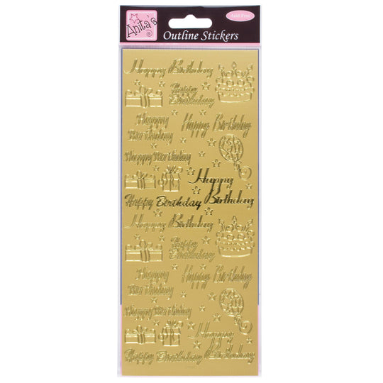 Anita's Outline Stickers, Happy Birthday Multicoloured, Gold, For Scrapbooking, Card Making, Kids Play, Homework, Art, Craft, Embelish, Decorative, Paper, Card, Glass, Metal, Plastic, Foam