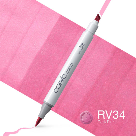 COPIC Ciao Coloured Marker Pen - (RV-34) Dark Pink, For Art & Crafts, Colouring, Graphics, Highlighter, Design, Anime, Professional & Beginners, Art Supplies & Colouring Books