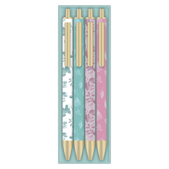 RHS The Royal Horticultural Society Ballpoint Pen Set, Chinoiserie, Pack Of 4, For Writing, Jotting, Notes, Ideas, Plans, Work, School, Office, Home Use, Perfect Gift Idea, Pastel Floral Design