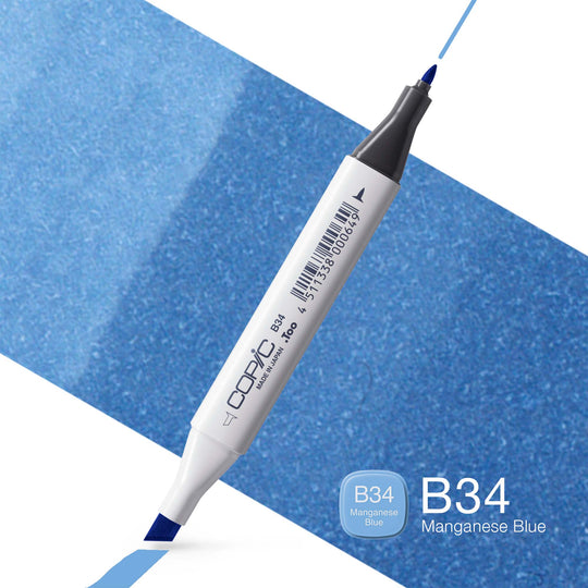 COPIC Classic Coloured Marker Pen - (B-34) Manganese Blue, For Art & Crafts, Colouring, Graphics, Highlighter, Design, Anime, Professional & Beginners, Art Supplies & Colouring Books