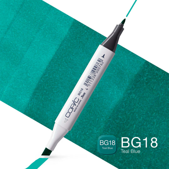 COPIC Classic Coloured Marker Pen - (BG-18) Teal Blue, For Art & Crafts, Colouring, Graphics, Highlighter, Design, Anime, Professional & Beginners, Art Supplies & Colouring Books
