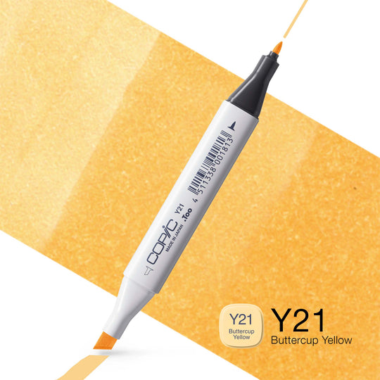 COPIC Classic Coloured Marker Pen - (Y-21) Buttercup Yellow, For Art & Crafts, Colouring, Graphics, Highlighter, Design, Anime, Professional & Beginners, Art Supplies & Colouring Books
