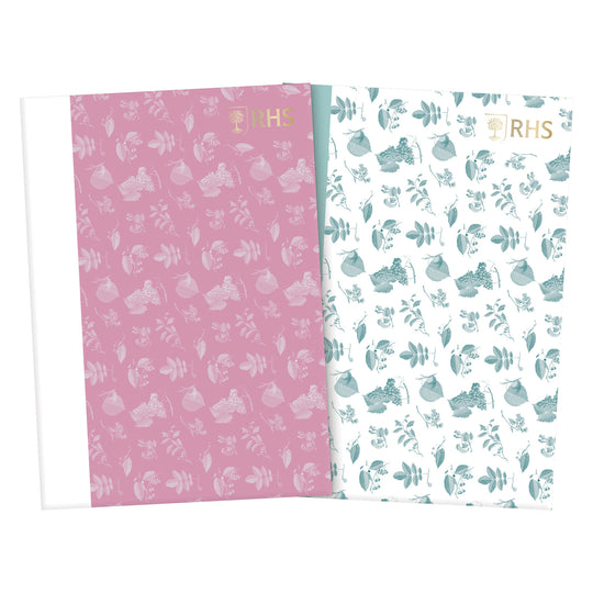 RHS The Royal Horticultural Society Notebook Duo, Chinoiserie, 40 Pages, 80gsm, Pack Of 2, For Sketching, Drawing, Note Writing, Bullet Journal, Diary, For College, School Home, Office Supplies