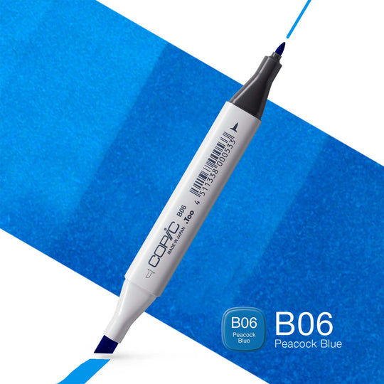 COPIC Classic Coloured Marker Pen - (B-06) Peacock Blue, For Art & Crafts, Colouring, Graphics, Highlighter, Design, Anime, Professional & Beginners, Art Supplies & Colouring Books
