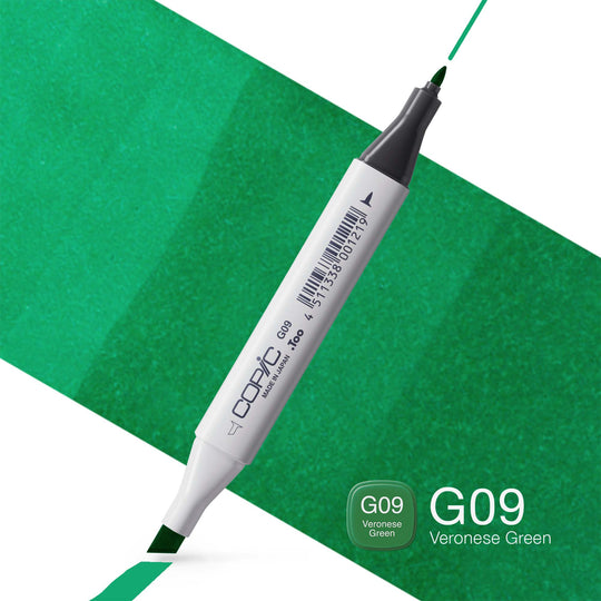 COPIC Classic Coloured Marker Pen - (G-09) Veronese Green, For Art & Crafts, Colouring, Graphics, Highlighter, Design, Anime, Professional & Beginners, Art Supplies & Colouring Books