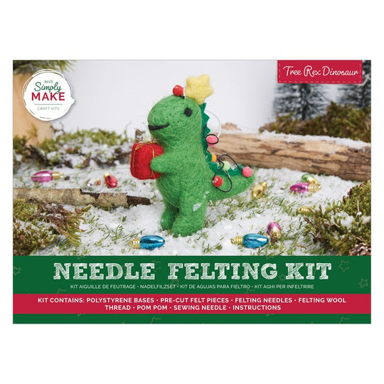 Simply Make Needle Felting Kit Christmas, Tree Rex Dinosaur, Including Wool, Needles, Tools, Beginners, Needle Felting Craft Kits, Starter Hobby Craft, Decoration, Gift, Hobbies For Crafty Enthusiasts