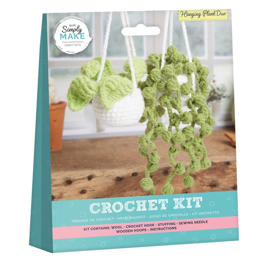Simply Make Crochet Craft Kit, Hanging Plant Duo, Contains All Supplies Needed For Crochet, Hook, Yarn, Adults Craft, Follow Patterns, Great Gifts, Makes Adorable Crochet Hanging Plants