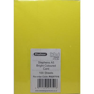 Stephens Bright Coloured Card A5 240gsm 100 Sheets, Great For Printing, Photocopying, Card Making, Decoupage, And Scrapbook Designs, Perfect Cardboard Base For Craft Projects, Essential Stationery Item
