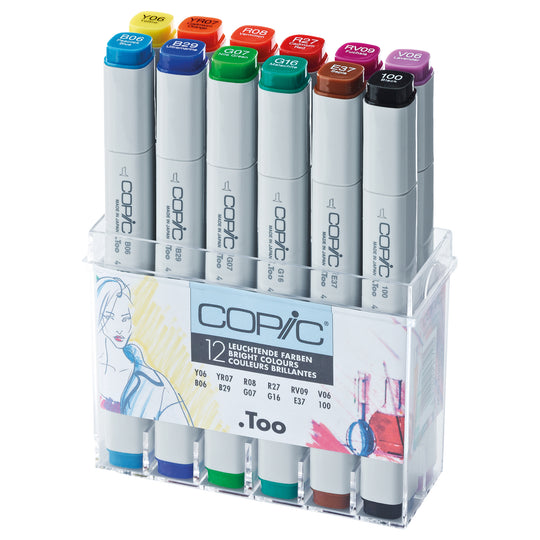 COPIC Classic Coloured Marker Pen - Set of 12 Bright Colours, For Art & Crafts, Colouring, Graphics, Highlighter, Design, Anime, Professional & Beginners, Art Supplies & Colouring Books