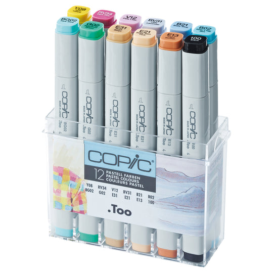 COPIC Classic Coloured Marker Pen - Set of 12 Pastel, For Art & Crafts, Colouring, Graphics, Highlighter, Design, Anime, Professional & Beginners, Art Supplies & Colouring Books
