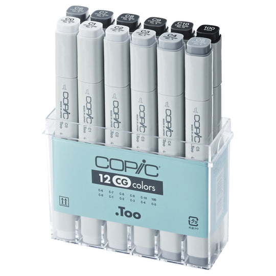 COPIC Classic Coloured Marker Pen - Set of 12 CG (Cool Gray), For Art & Crafts, Colouring, Graphics, Highlighter, Design, Anime, Professional & Beginners, Art Supplies & Colouring Books