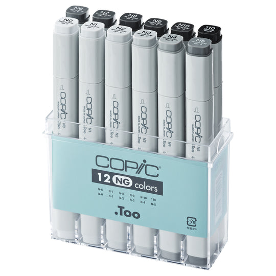 COPIC Classic Coloured Marker Pen - Set of 12 NG (Neutral Gray), For Art & Crafts, Colouring, Graphics, Highlighter, Design, Anime, Professional & Beginners, Art Supplies & Colouring Books