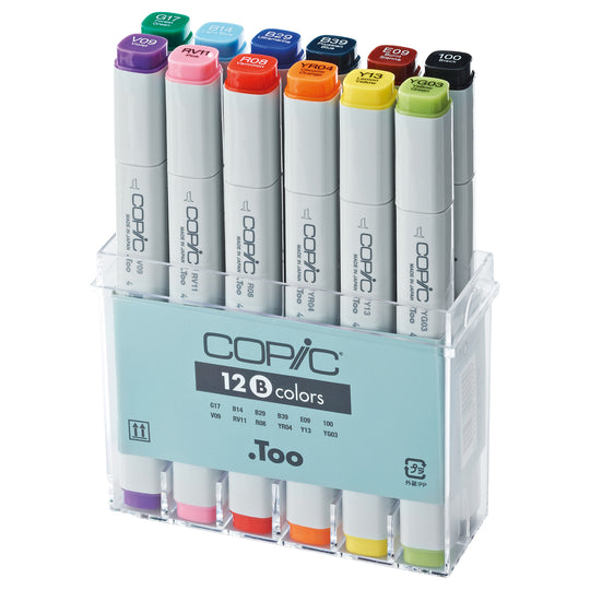 COPIC Classic Coloured Marker Pen - Set of 12 (Basic), For Art & Crafts, Colouring, Graphics, Highlighter, Design, Anime, Professional & Beginners, Art Supplies & Colouring Books