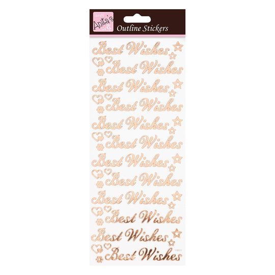 Anita's Outline Stickers, Best Wishes, Rose Gold On White, For Scrapbooking, Card Making, Kids Play, Homework, Art, Craft, Embelish, Decorative, Paper, Card, Glass, Metal, Plastic, Foam