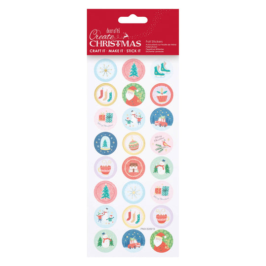 Create Christmas Foil Stickers, Cute Circles, Multicoloured, Single Sheet, Christmas Stickers for Children and Adults, Ideal Labels for Card Making and Craft, Kids Sticker Book and Scrapbook Stickers