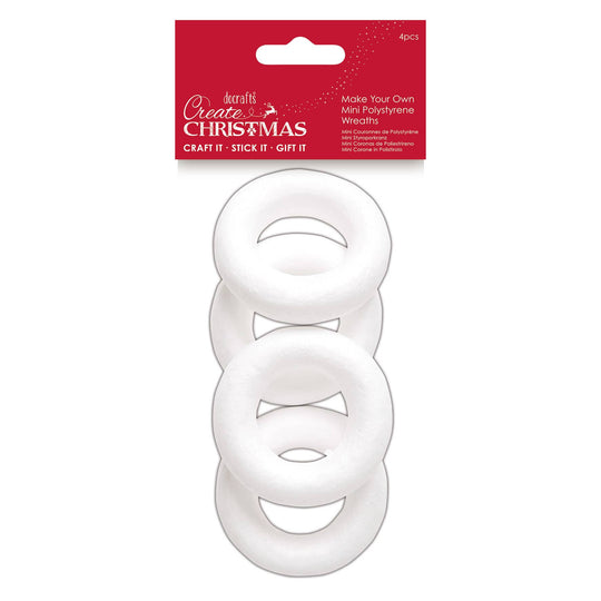 Create Christmas Make Your Own Mini Polystyrene Wreaths, White, Pack of 4, Polystyrene Crafts for Home, School, and Christmas Projects, Craft Supplies for Kids and Adults, Decorate with Paper