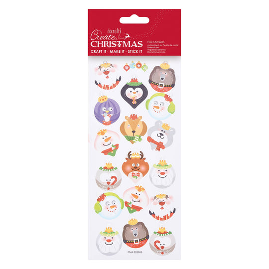 Create Christmas Foil Stickers, Face Baubles, Multicoloured, Single Sheet, Christmas Stickers for Children and Adults, Ideal Labels for Card Making and Craft, Kids Sticker Book and Scrapbook Stickers
