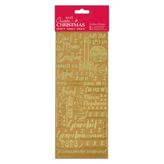 Create Christmas Outline Stickers Contemporary Christmas Relations, Gold, Single Sheet, Christmas Stickers for Children and Adults, Ideal Labels for Card Making, Craft Projects and Scrapbook Stickers