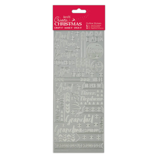 Create Christmas Outline Stickers Contemporary Christmas Relations, Silver, Single Sheet, Christmas Stickers for Children and Adults, Ideal Labels for Card Making, Craft Projects & Scrapbook Stickers