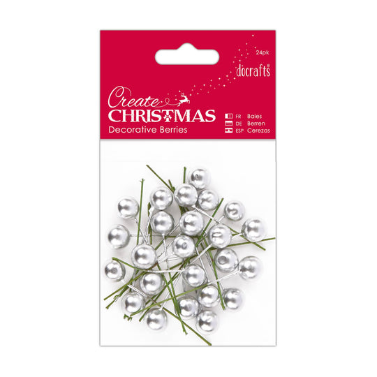 Create Christmas Decorative Berries, Silver, Pack of 24, Craft Supplies for Home Christmas Craft and Craft Projects, Ideal for Festive Crafts for Kids and Adults