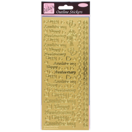 Anita's Outline Stickers, Happy Anniversary, Gold, For Scrapbooking, Card Making, Kids Play, Homework, Art, Craft, Embelish, Decorative, Paper, Card, Glass, Metal, Plastic, Foam