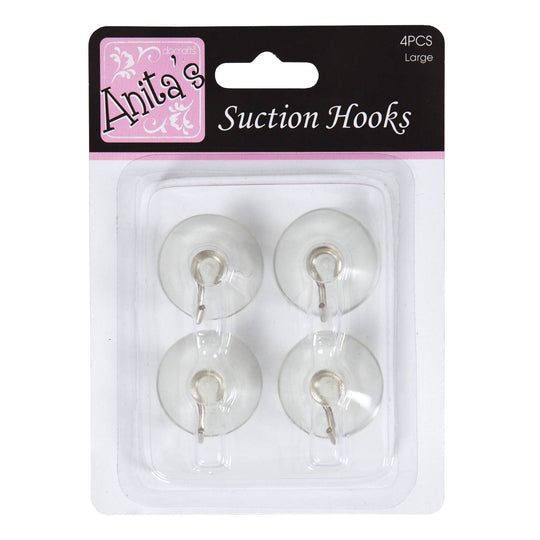 Anita's Suction Hooks, 1 1/8", Clear, Large, Pack Of 4, For Art, Craft, Bathroom, Hanging, Hooks, Coats, Towels, Kitchen, Shower, Holder