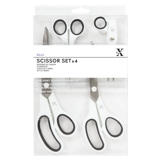 Vendor: Xcut Xcut Scissor Set, Black & White, Pack of 4, Upgrade your Tool Box and Home Tool Kit that's Perfect for Crafting, Grow your Craft Storage and add to your Crafting Tool Collection A useful 4 piece Scissor Set that includes 5.5" Sewing Scissors with finely pointed blades. Thread Snips for fine embroidery work 8.5" Household Scissors for everyday cutting tasks and 10" All-Purpose Scissors for all crafts. Great...Regular price £19.99
