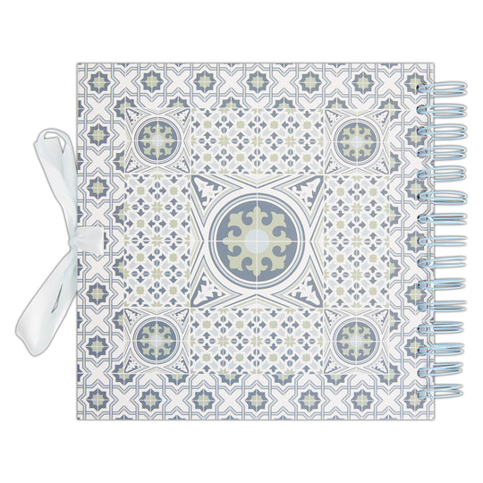 Papermania Wiro Bound Hardback Scrapbook, 40 Pages, White Paper, Tunisian, 8" x 8", Multicoloured, With Coordinating Ribbon Closure And Wire Colours