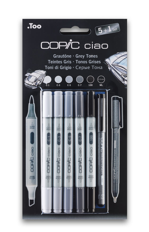 COPIC Ciao Coloured Marker Pen - 5+1 Set Grey Tones, For Art & Crafts, Colouring, Graphics, Highlighter, Design, Anime, Professional & Beginners, Art Supplies & Colouring Books