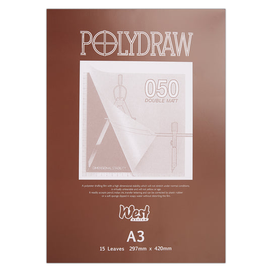 Westfilm Polydraw Polyester Drafting Film Pad, Clear, A3, 50 Microns, 15 Sheets, For Pencil, Ink, Transfer Lettering, Double-Matt Texture, Technical, Untearable, Will Not Yellow