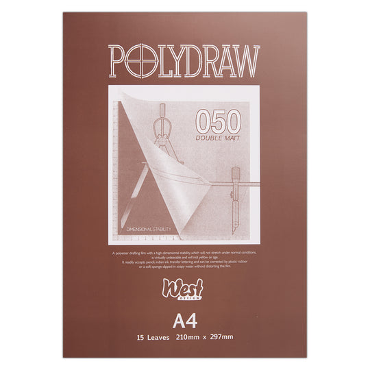 Westfilm Polydraw Polyester Drafting Film Pad, Clear, A4, 50 Microns, 15 Sheets, For Pencil, Ink, Transfer Lettering, Double-Matt Texture, Technical, Untearable, Will Not Yellow