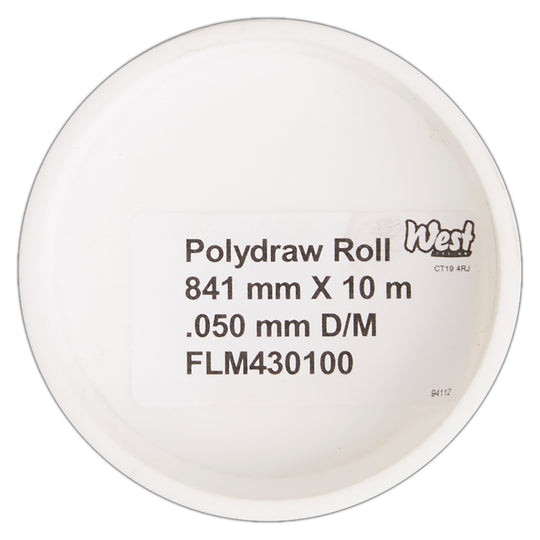 Westfilm Polydraw Polyester Drafting Film Roll Double Matt, Clear, 841mm x 10m, 75 Microns, For Pencil, Ink, Transfer Lettering, Double-Matt Texture, Technical, Untearable, Will Not Yellow