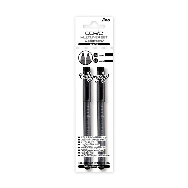 COPIC Multiliner Coloured Marker Pen - Calligraphy Set of 2 Black, For Art & Crafts, Colouring, Graphics, Highlighter, Design, Anime, Professional & Beginners, Art Supplies & Colouring Books