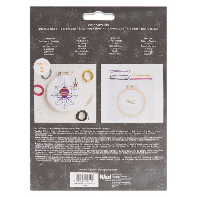 Simply Make Cross Stitch Kit Spider Design Halloween, Hoop, Embroidery Thread, Fabric & Needle, Perfect For Beginners, Starter Cross Stitch Craft Kit, Great Gift, Craft Hobbyists, Halloween Home Décor