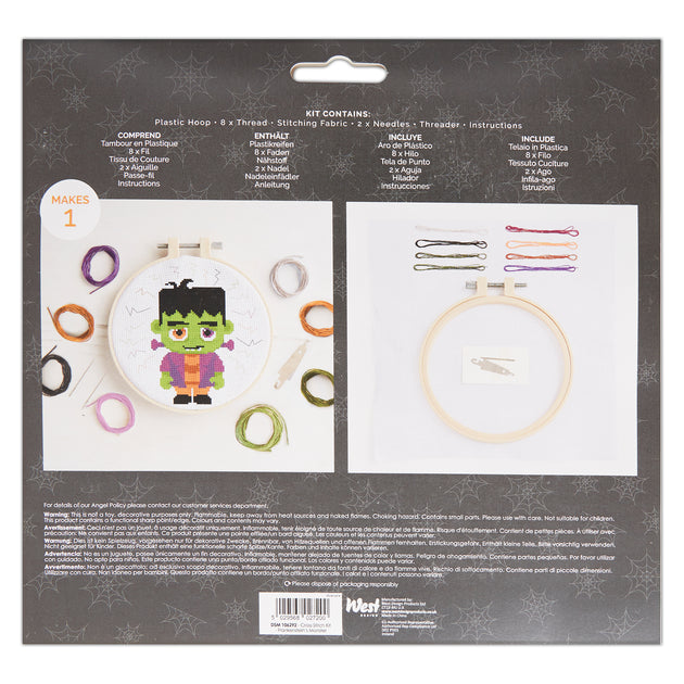 Simply Make Cross Stitch Kit Frankenstein's Monster Halloween, Hoop, Embroidery Thread, Fabric & Needle, For Beginners, Starter Cross Stitch Craft Kit, Great Gifts, Craft Hobbyists, Halloween Décor