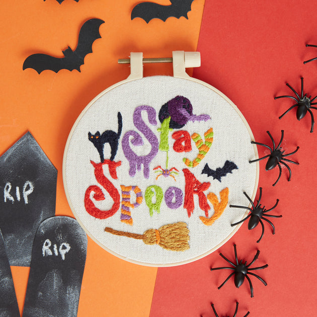 Simply Make Embroidery By Numbers Kit, Stay Spooky Halloween Craft Kit, Stitch & Sewing Kit, Includes Embroidery Threads, Craft Kits for Adults, Embroidery Kit With Embroidery Hoop
