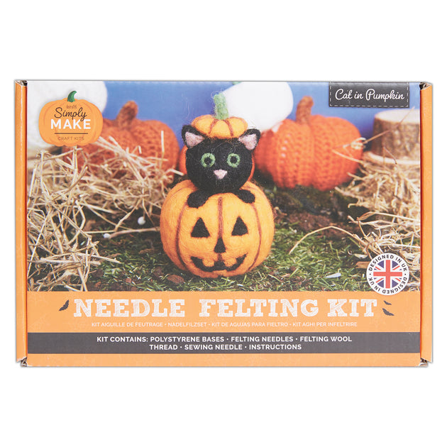Simply Make Needle Felting Kit Halloween Cat in Pumpkin, Including Wool, Needles, Tools, For Beginners, Needle Felting Craft Kits, Starter Hobby Craft, Decoration, Gift, Hobbies For Crafty Enthusiasts