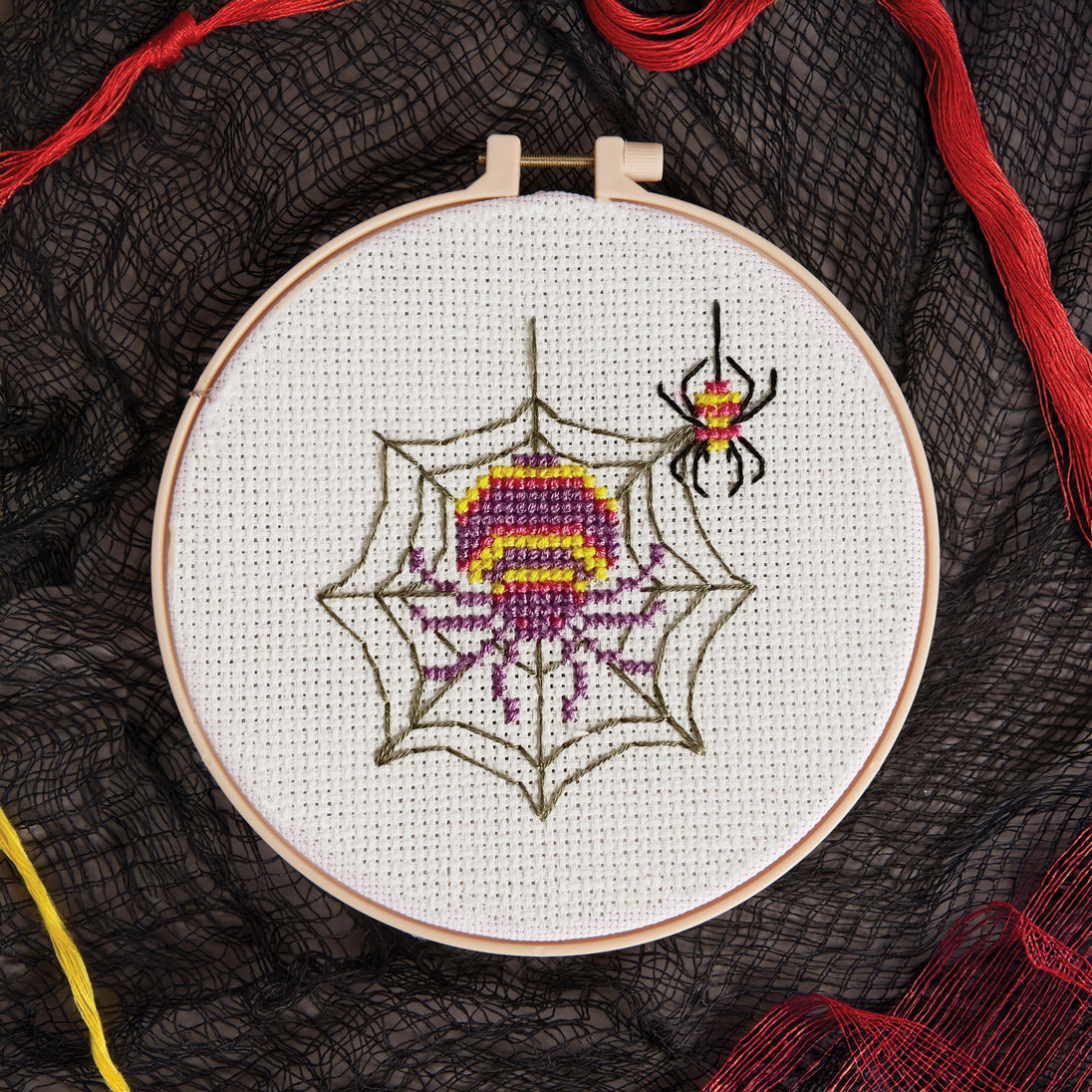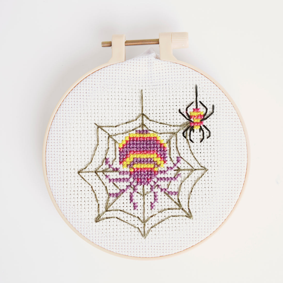 Simply Make Cross Stitch Kit Spider Design Halloween, Hoop, Embroidery Thread, Fabric & Needle, Perfect For Beginners, Starter Cross Stitch Craft Kit, Great Gift, Craft Hobbyists, Halloween Home Décor