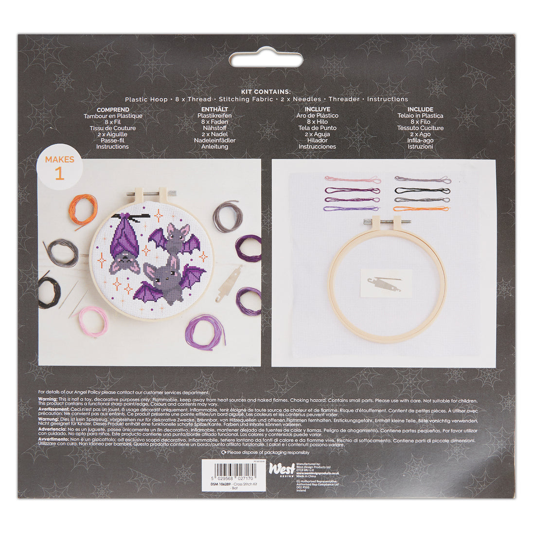 Simply Make Cross Stitch Kit Bat Design, Halloween, Hoop, Embroidery Thread, Fabric & Needle, Perfect For Beginners, Starter Cross Stitch Craft Kit, Great Gifts, Craft Hobbyists, Halloween Home Décor
