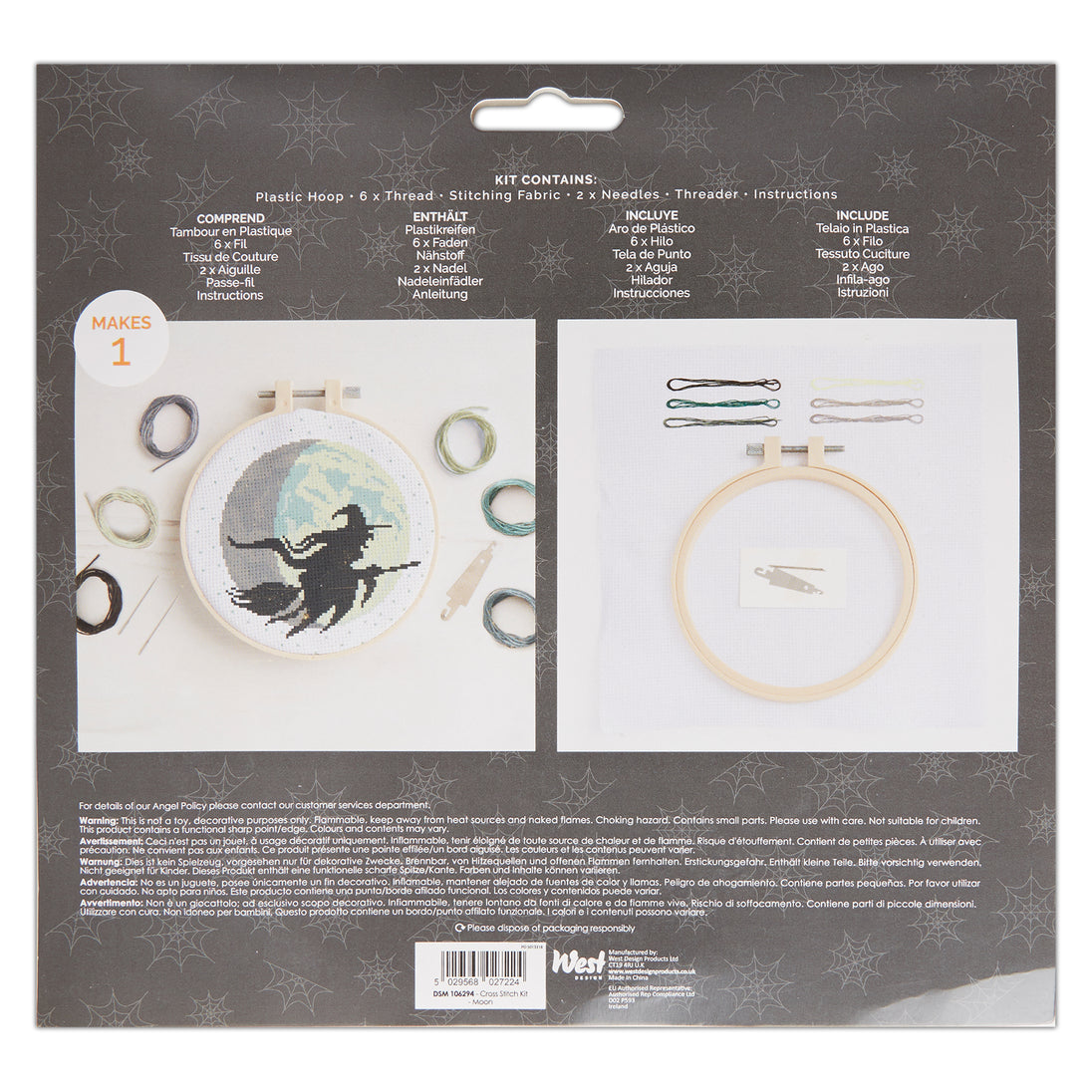 Simply Make Cross Stitch Kit Moon Design, Halloween, Hoop, Embroidery Thread, Fabric & Needle, For Beginners, Starter Cross Stitch Craft Kit, Great Gifts, Craft Hobbyists, Halloween Home Décor