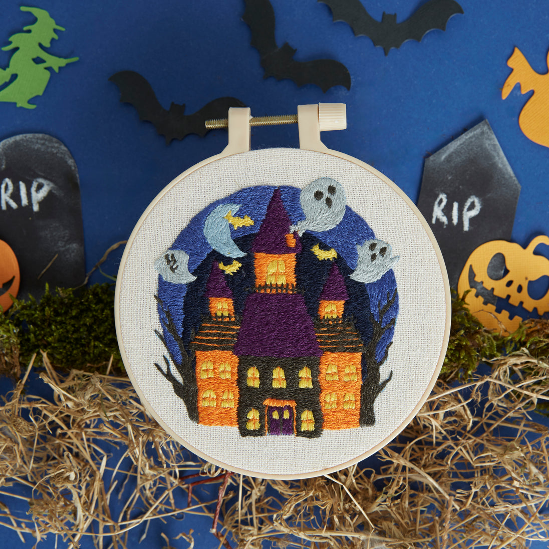 Simply Make Embroidery By Numbers Kit, Haunted House Halloween Craft Kit, Stitch & Sewing Kit, Includes Embroidery Threads, Craft Kits for Adults, Embroidery Kit With Embroidery Hoop