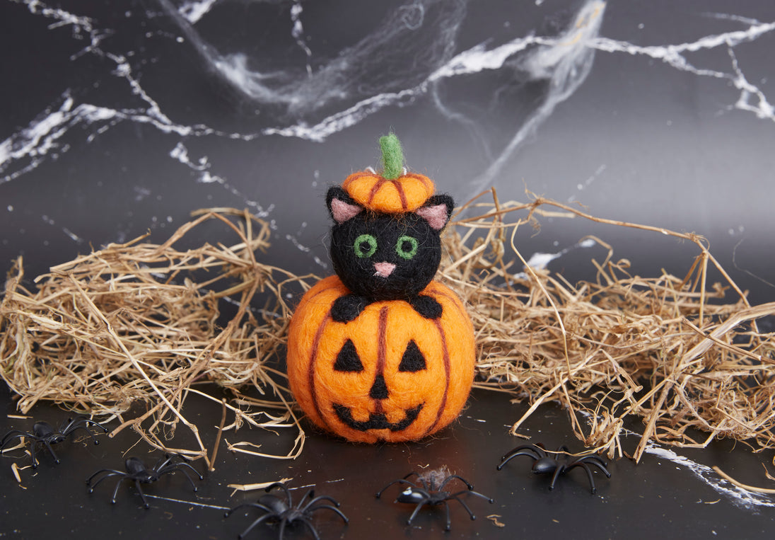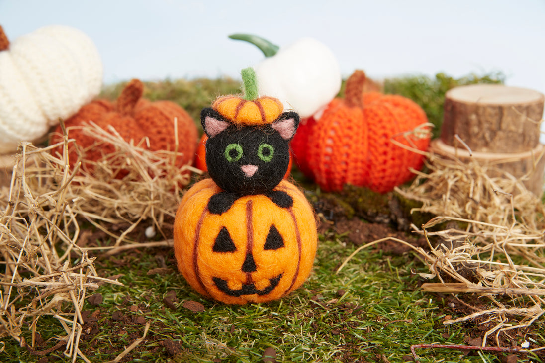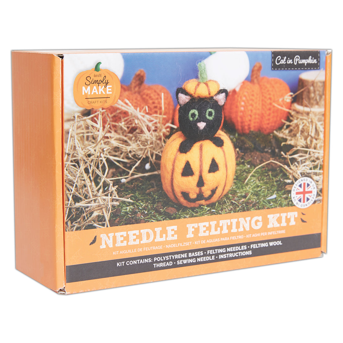 Simply Make Needle Felting Kit Halloween Cat in Pumpkin, Including Wool, Needles, Tools, For Beginners, Needle Felting Craft Kits, Starter Hobby Craft, Decoration, Gift, Hobbies For Crafty Enthusiasts