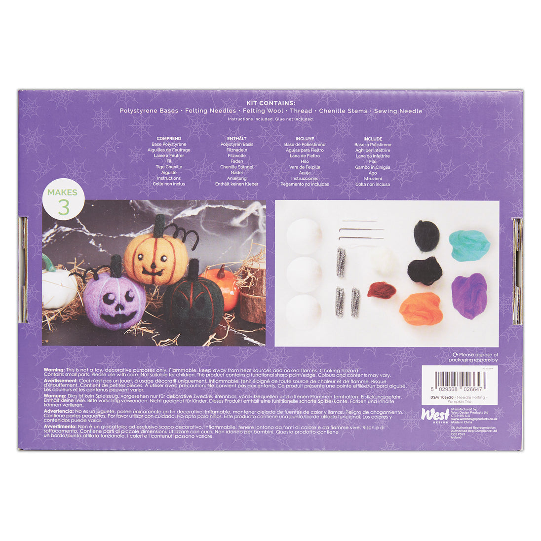 Simply Make Needle Felting Kit Halloween Pumpkin Trio, Including Wool, Needles, Tools, For Beginners, Needle Felting Craft Kits, Starter Hobby Craft, Decoration, Gift, Hobbies For Crafty Enthusiasts