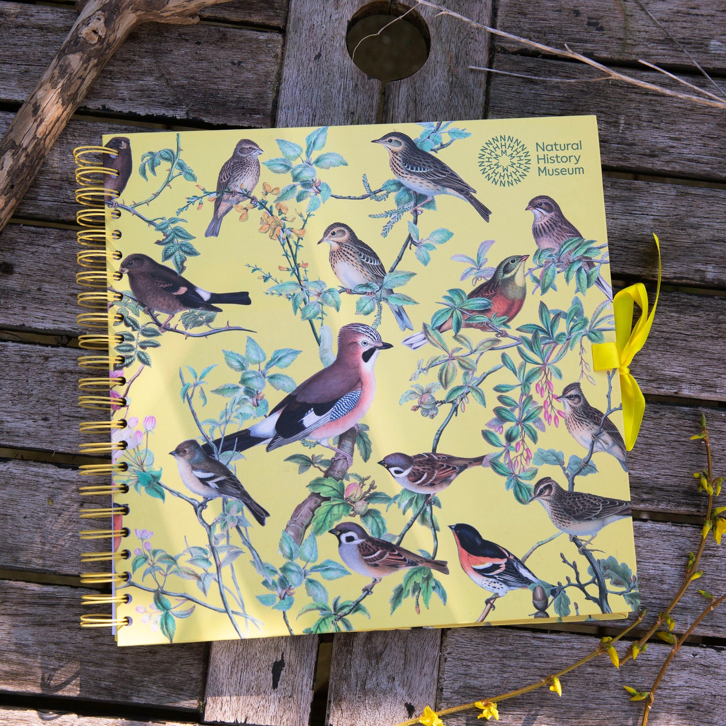 Natural History Museum Wiro Bound Hardback Scrapbook, 40 Pages, White Paper, Flock, 12" x 12", Multicoloured, With Coordinating Ribbon Closure And Wire Colours