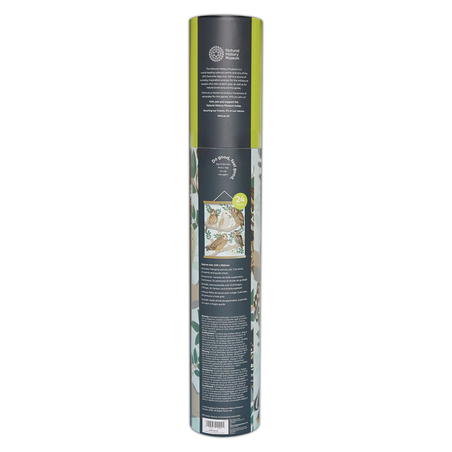 NHM Natural History Museum Paint By Numbers Owls Hanging Kit With 24 Paints & 3 Brushes, Ocean Design, 400 x 500 mm, Multicoloured, Learn To Paint For Adults