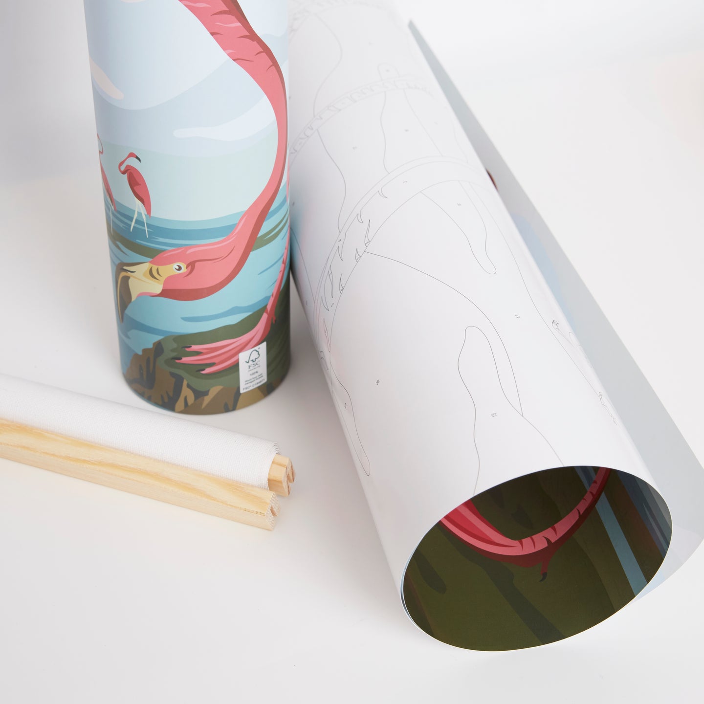 NHM Natural History Museum Paint By Numbers Flamingo Hanging Kit With 24 Paints & 3 Brushes, Ocean Design, 400 x 500 mm, Multicoloured, Learn To Paint For Adults