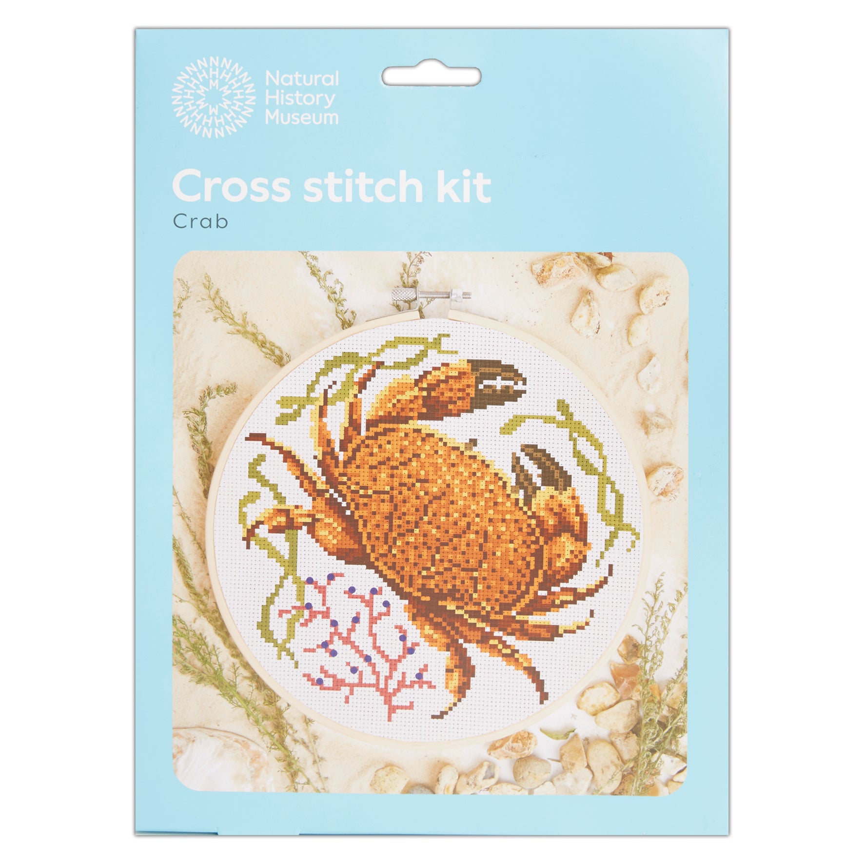 NHM Natural History Museum Cross Stitch Kit, Crab Design, 14cm Embroidery Kits For Adults, Cross Stitch Kits For Adults Beginners, Gift Idea, With Embroidery Patterns, Embroidery Set